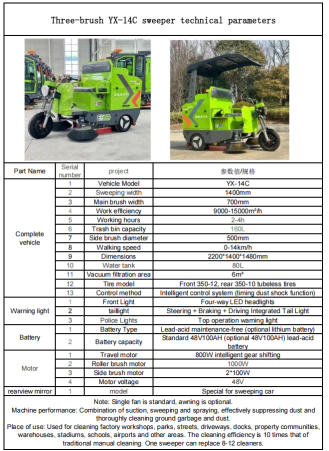 Maskinperformance: kombinationofresultat, fejning og sprøjtning, effektivt suppressingdustandthoroughlycleaninggroundgarbageanddust.