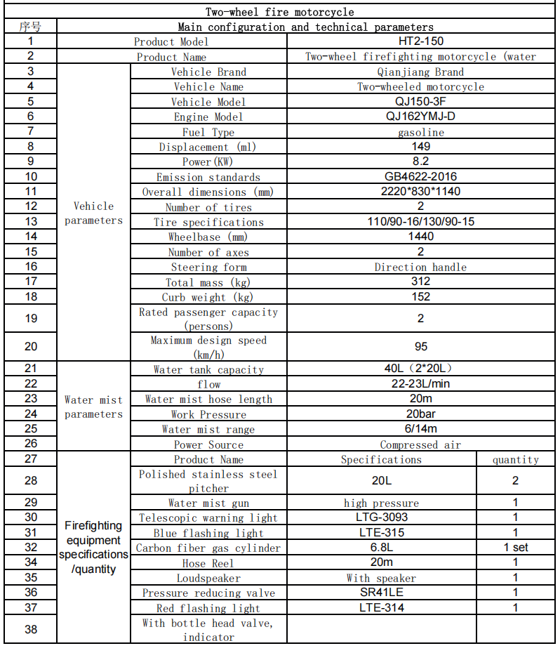 Køretøjets krop er lille (normalt ca. 2 meter lang og ca. 0,8 meter bred) og kan nemt skifte gennem smalle gader, gyder i gamle byområder, fodgængergader, naturskønne bjergveje, bylandsbyer og andre områder, som store brandbiler ikke kan nå, og løse problemet med brandbeskyttelsesdækning i den "sidste mil".